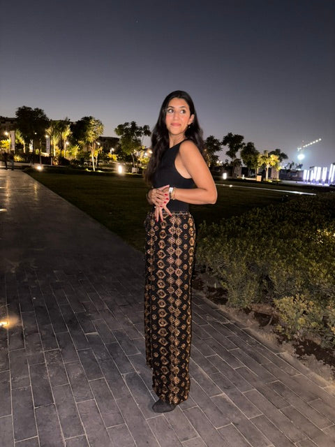 The pants bring together comfort and radiance. Crafted from premium Indian chiffon and padded from the inside for a smooth, flattering fit, they shimmer gently with every move.